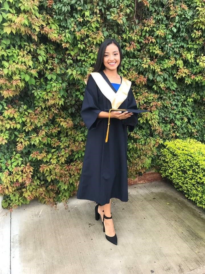 - Toga, birrete y accesorio decorativo respectivamente desinfectados.